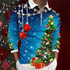 рождество мужская новогодняя елка 3d молния поло дерево повседневная молния гольф длинный рукав для улицы повседневная уличная одежда осень&зимняя 3D-печать отложной воротник молния синий