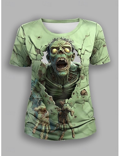 Halloween Жен. Футболка Графика Черепа Винтаж Стиль Классика С короткими рукавами Вырез под горло Обычные топы Повседневные выходные С принтом Розовый Синий Лиловый Зеленый Лето Осень