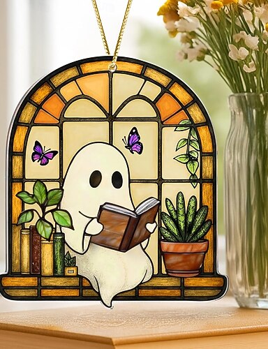 Искусственные витражные украшения в виде привидения из акрила на Хэллоуин, милый ловец солнца, милый подарок-призрак для любителей книг, готический осенний декор для окна, подарки на Хэллоуин для