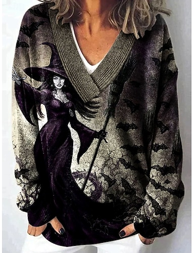 Хэллоуин Женский Кардиган Повседневный Графика Ведьма Череп Рифлёный V-образный Вырез Пуговицы Печать Длинные Рукава Классические Верхняя Одежда Вязание На Улице Выходные Чёрный Осень Зима