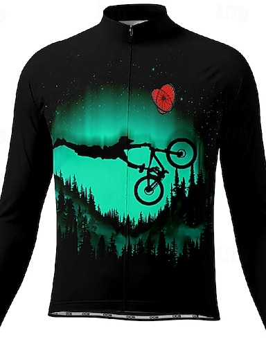 Муж. Велокофты Графика Длинный рукав Велоспорт Футболка Футболка Джерси с 3 задними карманами Горные велосипеды Быстровысыхающий Анатомический дизайн Фитиль Дышащий Виды спорта Синий Зеленый Одежда