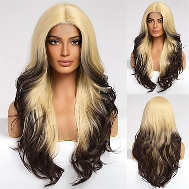 длинный волнистый парик, парик омбре, светлый парик, средняя часть, вьющиеся волнистые волосы для женщин, длинный светлый парик длиной 24 дюйма, естественный вид, термостойкие волосы для девочек,
