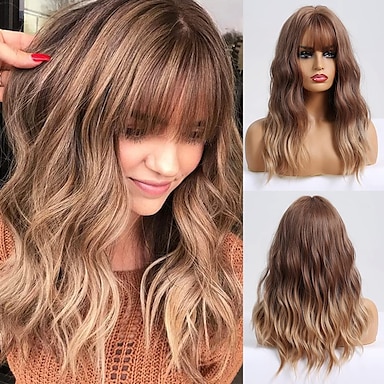 Парик золотистого блонда Парик клубничной блондинки с челкой Длинноволосый парик для женщин Челка на занавеске Синтетический многослойный парик Длинный волнистый средне-коричневый парик Светлый парик