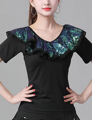 Латино Бальные танцы Кофты Оборки Планка Пайетки Жен. Выступление Учебный С короткими рукавами Спандекс