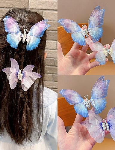 Дети Девочки Аксессуары для волос Активный Милая Для вечеринок День рождения Бабочка Розовый Синий