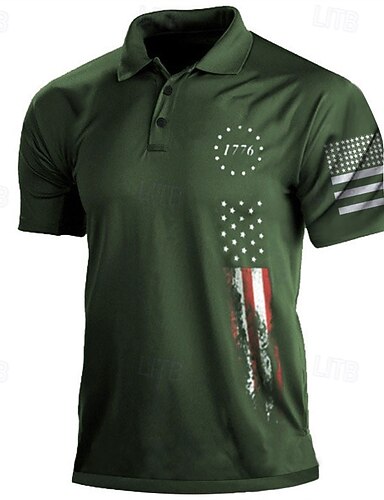 Муж. Американский флаг Ветераны Рубашки поло Рубашка для гольфа С короткими рукавами Футболки поло Рубашки с воротником На каждый день Уличная одежда Одежда для отпуска Наряды для вечеринок