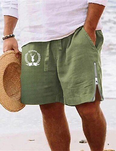 Муж. Шорты Льняные шорты Платье-шорты Летние шорты Пляжные шорты Карман Пуговицы Полотняное плетение Комфорт Дышащий Короткие Повседневные Праздники Мода Оригинальный рисунок Белый Военно-зеленный