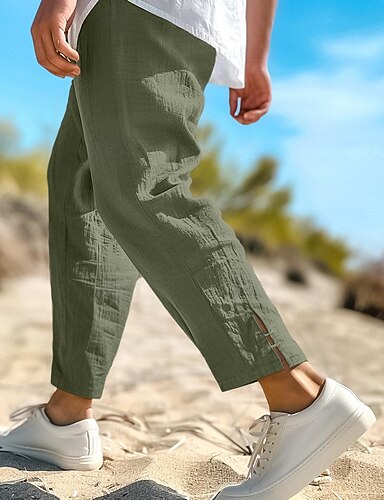 Муж. Льняные брюки Летние штаны Укороченные брюки Пляжные штаны Кулиска Эластичная талия Полотняное плетение Комфорт Дышащий До щиколотки Повседневные Праздники Мода Классический Черный Белый