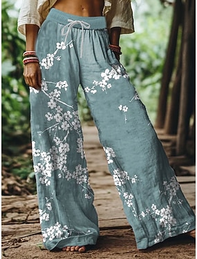 Жен. Широкие Чино Мешковатые брюки Пляжные шорты Отпуск Винтаж Мода Полная длина Завышенная Цветочный принт Графика Рисунок Мягкий Дышащий Слабоэластичная Повседневные Отпуск Официальные