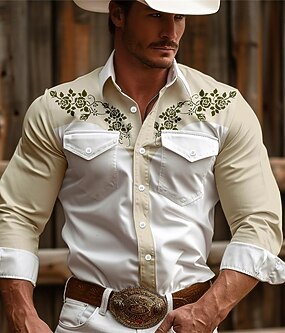 Муж. Цветочный принт Западная рубашка Ковбойская рубашка Длинный рукав Винтаж западный стиль На каждый день На выход выходные Весна лето Отложной Карман С принтом Кнопка вниз