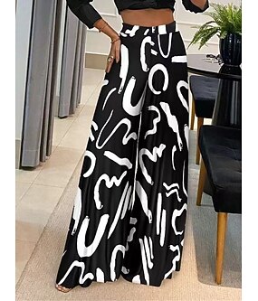 Жен. Широкие Брюки Мода Уличный стиль Полная длина Завышенная Геометрический принт Буквы Рисунок Высокий вырез Комфорт Воздухопроницаемость Мягкий Слабоэластичная Отпуск Для улицы Повседневные