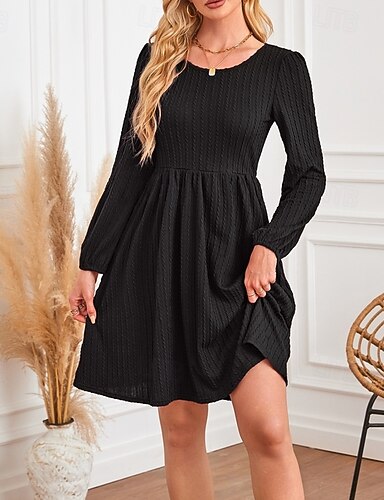 Жен. Мини-платье Черное платье Коктейльные платья Вечернее платье Платье A-силуэта На каждый день Отпуск Офис Стандартный Полотняное плетение Длинный рукав V-образный вырез