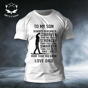 Муж. Буквы День отца Футболка 100% хлопок С короткими рукавами Графика Рубашка Черный Белый Военно-зеленный Удобная футболка Для улицы Для спорта и активного отдыха Модельер одежды