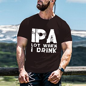 Муж. С надписью Пиво Футболка Хлопок С короткими рукавами Графика Рубашка Черный Темно-Серый Удобная футболка Для улицы Для спорта и активного отдыха Модельер одежды