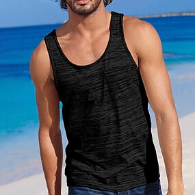 Муж. Безрукавка Жилет Майки Без рукавов U-образный вырез Глубокий круглый вырез Лето Сплошной цвет Полотняное плетение Мода Классика Удобный Цветовые блоки Для улицы Повседневные Спорт