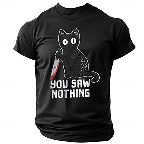Муж. Кот Хэллоуин С надписью Футболка 100% хлопок С короткими рукавами Графика Рубашка Черный Винный Темно-синий Удобная футболка Для улицы Для спорта и активного отдыха Модельер одежды