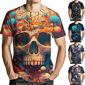 Муж. Графика Черепа Рубашка с коротким рукавом футболка футболка Футболка С короткими рукавами Футболка 3D печать Вырез под горло Рубашка Мода Оригинальный рисунок На каждый день