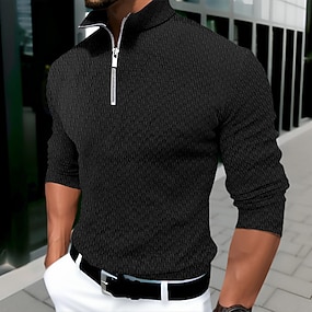 Муж. Футболка Трикотажная футболка в рубчик Рубашка с длинным рукавом Длинный рукав Воротник-стойка Половина молния Весна Осень Зима Полотняное плетение Пит Стрип