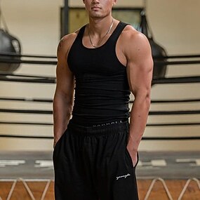 Муж. Спортивная рубашка Компрессионный бак Фитнес-танк Мужские топы Вырез под горло Без рукавов Для занятий спортом Отпуск На выход На каждый день Для спортивного зала Быстровысыхающий Дышащий Мягкий