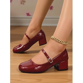Женские туфли Мэри Джейн бордового цвета из лакированной кожи – винтажные туфли 1950-х годов на блочном каблуке с ремешком на пряжке для девочек, костюмов для косплея и вечеринок