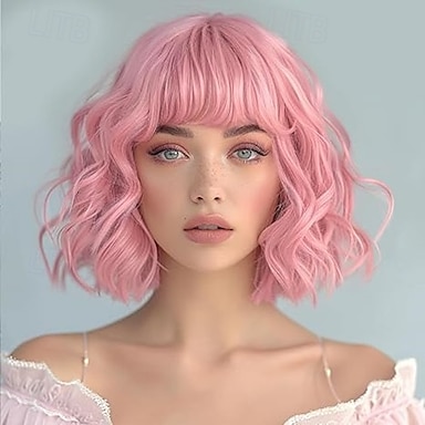 парик короткий кудрявый волнистый парик с челкой для женщин длиной до плеч парик боб женские цветные синтетические термостойкие волокна парики для косплея парики для рождественской вечеринки