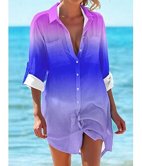 Мини-платье рубашка для женщин Гавайские рубашки Легкие Мода Пуговцы Принт Длинный Рукав Длинный Воротник Повседневная Отдых Пляж Синий Зелёный Лето праздничные одежды Пляжная одежда