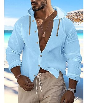 Муж. Рубашка льняная рубашка Летняя рубашка Одежда для пляжа Кнопка рубашка Полотняное плетение Отпуск Кьюриз Черный Белый Синий Цвет хаки Длинный рукав Капюшон Весна лето Одежда