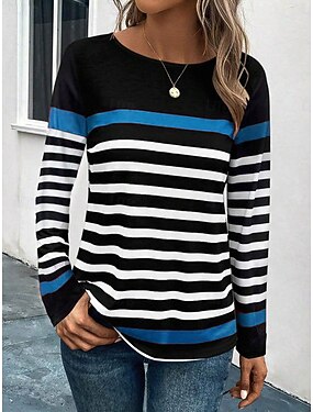 Футболка женская с круглым вырезом длинным рукавом туника повседневная цветные блоки печать обычные топы ежедневная печать розовый темно-синий синий фиолетовый весна осень