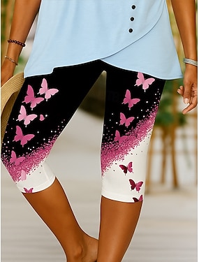 Жен. Леггинсы Элегантный стиль Отпуск Мода Капри Завышенная Графика Бабочка Сияние и блеск Эластичная на открытом воздухе Отпуск Повседневные Желтый Розовый Синий Лето Весна Обтягивающие