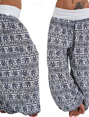 Жен. Широкие Брюки Мода Богемный Полная длина Средняя талия Цветочный принт С принтом удобный На открытом воздухе Удобный на открытом воздухе Отпуск Праздники