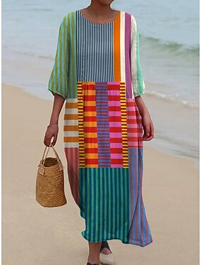 Женское макси-платье кафтан 3/4 длина рукава круглый вырез повседневное платье-шифт А-силуэт платье бохо для повседневной и праздничной носки обычной посадки графический геометрический абстрактный