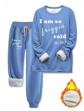 Женский комплект из 2-х предметов свитшот с капюшоном флисовая подкладка комплект из двух предметов и брюки принт на буквах теплое комфортное мягкое домашнее повседневное одеяние флисовое теплое