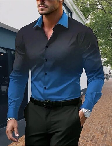 Муж. Рубашка Летняя рубашка Повседневная рубашка Пляжная рубашка Кнопка рубашка Черный Синий Зеленый Светло-синий Длинный рукав Градиент Лацкан Отпуск Гавайский Одежда Полиэстер