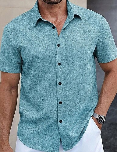 Муж. Рубашка Летняя рубашка Повседневная рубашка Пляжная рубашка Кнопка рубашка Черный Белый Светло-зеленый Синий Темно-зеленый С короткими рукавами Полотняное плетение Воротничок Отпуск Повседневные
