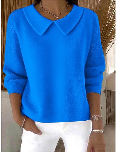 Жен. Вязаная ткань Пуловер Повседневные Стиль На каждый день Сплошной цвет Рельефный узор Рубашечный воротник Трикотаж Длинный рукав Обычные топы Вязать Повседневные Праздники На выход Черный Желтый