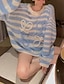 Жен. Пуловер На каждый день Полоски коренастый V-образный вырез Трикотаж Длинный рукав Обычные топы Вязать Повседневные Праздники На выход Синий Светло-синий Осень Зима