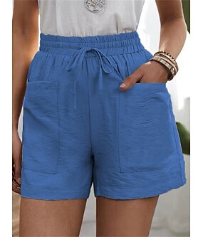 Жен. Шорты Уличный стиль Простой На каждый день Короткие Завышенная Полотняное плетение Карман Эластичная талия Дышащий Мягкий На открытом воздухе Слабоэластичная