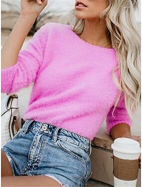 Жен. Рубашка Сплошной цвет Стиль На каждый день Рукав 3/4 Вырез лодочкой Обычные топы Повседневные Белый Розовый Бежевый Серый Весна Осень