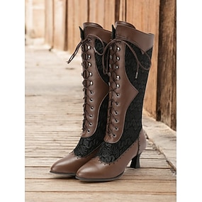 женские викторианские ботинки до середины голени на шнуровке – искусственная кожа и кружево, обувь в стиле стимпанк-готика для косплея, вечеринок и особых случаев