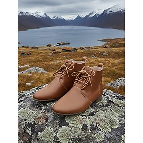 Жен. Ботинки Большие размеры Сапоги на шнуровке на открытом воздухе Повседневные Однотонный Ботильоны Ботильоны Шнуровка На каблуке-рюмочке Кубинский каблук Заостренный носок
