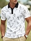Муж. Поло Рубашка для гольфа Повседневные Праздники Лацкан С короткими рукавами Мода Классический Цветочный принт Гавайи Пэчворк Карман Лето Весна Стандартный Черный Белый Цвет фуксии Бирюзовый Поло