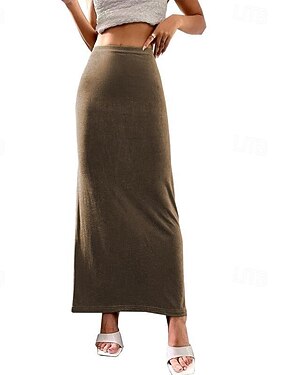 Жен. Юбки Облегающий силуэт На каждый день Макси Со стандартной талией Подол Полотняное плетение Слабоэластичная Отпуск На выход Черный Миндальный Розовый Коричневый Осень Полиэстер