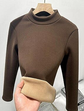 Жен. Туника Сплошной цвет На каждый день Длинный рукав Хомут Обычные топы Повседневные Черный Желтый Светло-коричневый Коричневый Серовато-белый Осень Зима