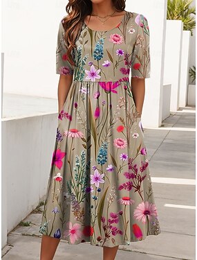 Женское мини платье A-Line Повседневное платье Платье для маленьких размеров Сменное платье Мода Основное Классическое На открытом воздухе Отпуск Вечеринка Регулярная посадка Цветочный Дицти