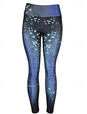 Жен. Спортивные штаны Леггинсы для йоги Утягивание живота Завышенная Спортивная Пилатес Бег Нижняя часть Космический принт Синий Осень Виды спорта Спортивная одежда