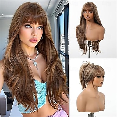 Длинные светлые прямые парики с челкой, длинные светлые синтетические многослойные парики с эффектом омбре для женщин, для ежедневного использования, 26 дюймов