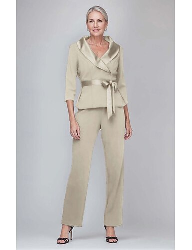 Жен. Костюмы Костюмы-2 Официальные Свадебный гость Сатин Стретч-креп Элегантный стиль Простой минималист Рукав 3/4 со складками До щиколотки Воротник шалевого типа