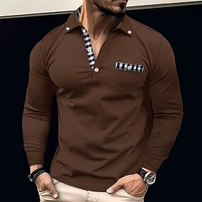 Муж. Рубашка для гольфа Рубашки-поло для гольфа Офис Повседневные Лацкан Длинный рукав Классический Современное В клетку Контрастных цветов Пэчворк Пуговицы Весна Осень Стандартный