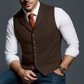 Муж. Жилет из искусственной замши Западный жилет Жилет Отпуск Бизнес Повседневные Свидание Винтаж ковбой Весна Осень Карман Пуговицы Полиэстер Удобный Полотняное плетение Однобортный крой V