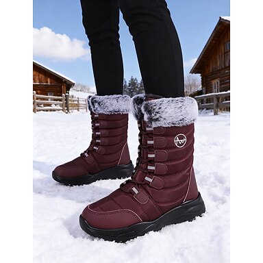 Женские зимние ботинки бордового цвета длиной до середины голени с отделкой из искусственного меха, водонепроницаемые утепленные ботинки для походов и катания на лыжах &холодная погода